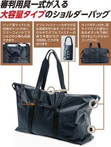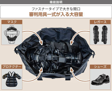 - 審判・捕手用バッグ 色/ブラック 素材/ナイロン、PVCコーティング サイズ/W73×H40cm 附属品/カギ